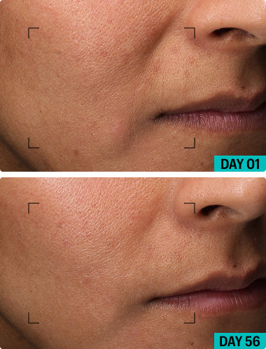 ⁴ Ergebnis basierend auf einer Selbsteinschätzung mit 35 Teilnehmerinnen nach zweimal täglicher Anwendung über 56 Tage.